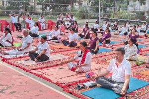 योग दिवस के अवसर पर आयोजित कार्यक्रम में मीना, कृष्णा और उनके ग्रुप ने एक सुंदर योग गीत प्रस्तुत किया। डॉ पुष्कर ने एक्यूप्रेशर और कलर थेरेपी के बारे में कुछ आवश्यक बातें बताई। जैसे रंगों का हम थेरेपी में कैसे उपयोग कर सकते हैं और शरीर के कुछ मुख्य प्वाइंटों के बारे में बताया। इसके पश्चात योग गुरू रेनू तेवतिया और अर्चना शर्मा द्वारा चलाई जाने वाली एक योग क्लास ने प्रख्यात गायक कैलाश खेर की आवाज में प्रस्तुत वंदना ” एक नदी से बह रहे हैं आदियोगी.. के बोल पर एक सुंदर योग- नृत्य प्रस्तुत किया गया।