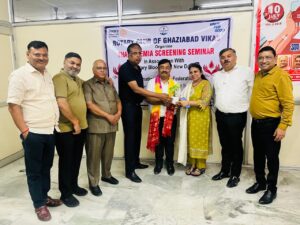 गाजियाबाद। रोटरी क्लब गाजियाबाद विकास द्वारा राजकुमार गोयल इंस्टिट्यूट ऑफ़ टेक्नोलॉजी में एक रक्तदान शिविर का आयोजन किया गया। इस रक्तदान शिविर में थैलेसीमिया नामक बीमारी की निशुल्क जांच भी की गई।