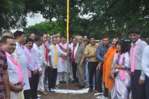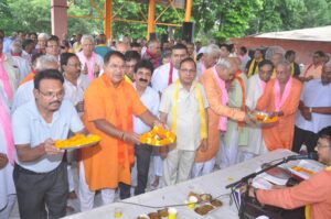 कार्यक्रम के मुख्य अतिथि विजय कुमार गुप्ता (हरिराम इस्पात लोहा मंडी) एवं मुकेश कुमार गुप्ता (रॉडिक फार्मा लिमिटेड) ने भूमि पूजन कर हनुमान जी की ध्वजा फहराई।